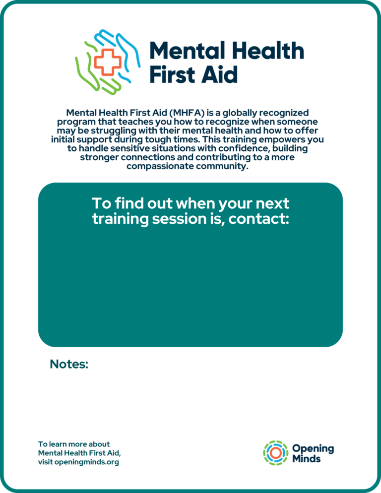 Fillable poster for Mental Health First Aid (MHFA) sessions....