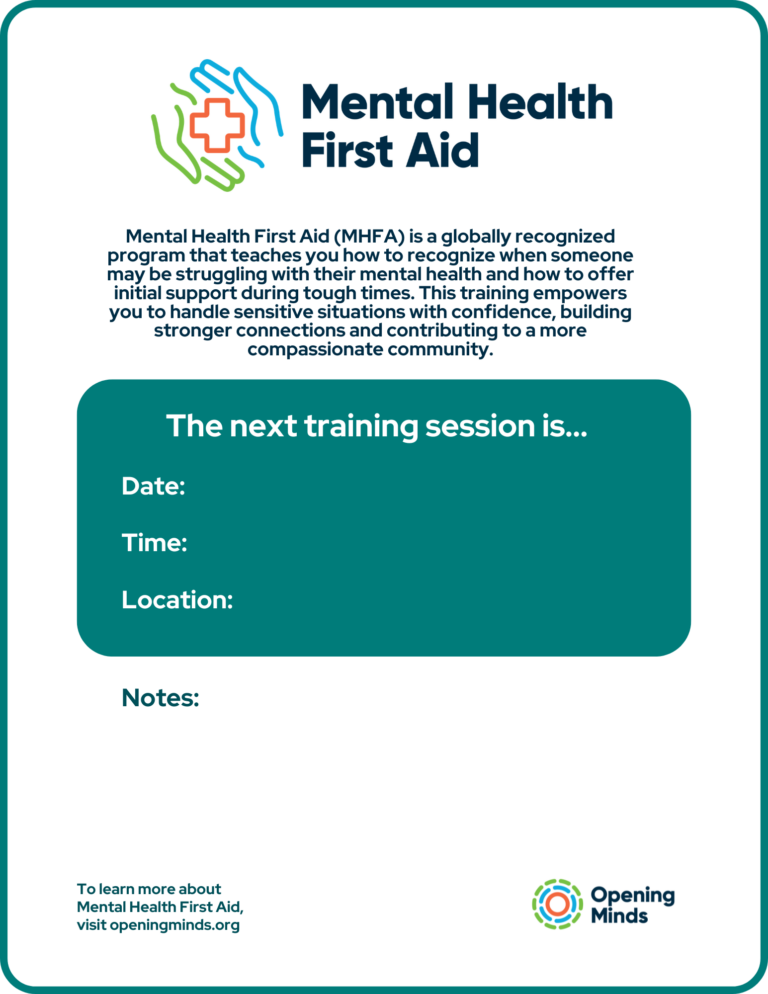Mental Health First Aid - Next Session Fillable Poster to be used to announce the date and time of the...